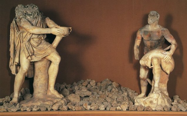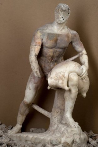 La superficie del marmo delle statue di Ulisse e del compagno è di colore rossastro, a causa dell’ossidazione, per la lunga permanenza in mare, dei perni in ferro rinvenuti all’interno, e risalenti a un restauro antico. Entrambe si rifanno a modelli ellenistici di scuola pergamena della prima metà del II sec. a.C..